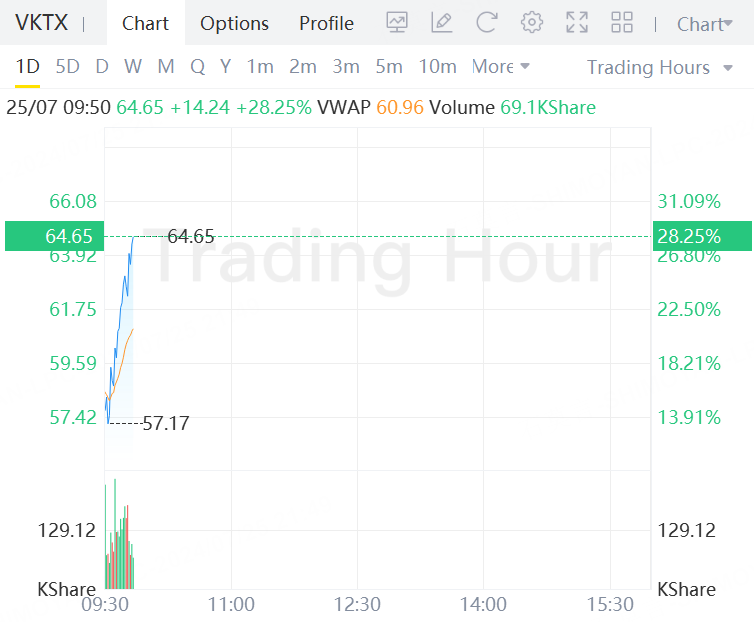 Shares of Viking Therapeutics jumped in morning trading after the company said that its VK2735 drug to tackle obesity is advancing to a phase 3.