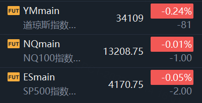 4月14日,美股指期货弱势震荡,截止发稿,道指期货跌0.24%,纳指期货跌0.01%,标普500指数期货跌0.05%。