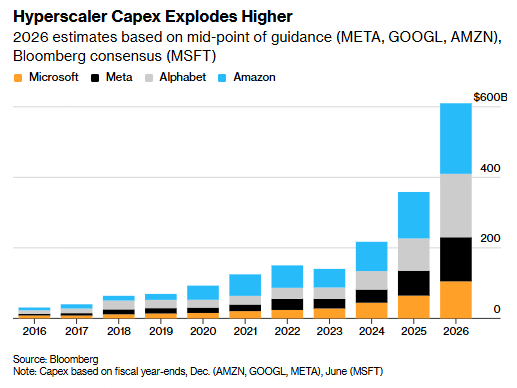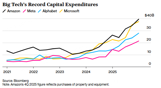 Alphabet, founded in a garage south of San Francisco in 1998, on Wednesday rattled investors when it revealed a capital spending forecast that exceeded not just analyst estimates, but the spending of a vast swath of US industry — it plans to spend as much as $185 billion. And Amazon on Thursday bested that with a planned $200 billion in capital expenditures for 2026, also sending its shares tumbling.