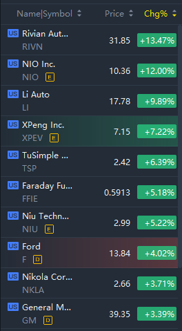 EV stocks took off in morning trading; Rivian Automotive, Inc. surged over 13% and NIO Inc. surged 12%.