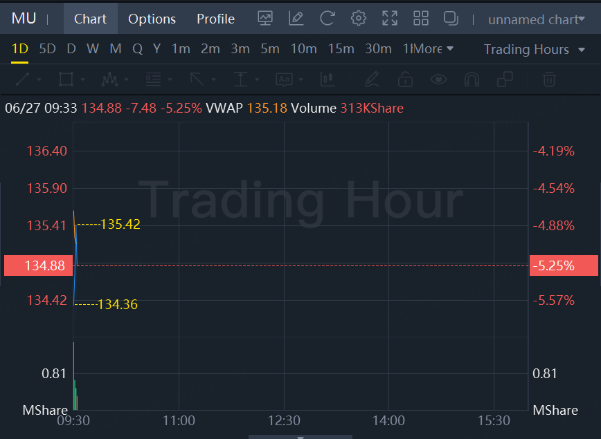 Micron Technology Inc., the largest US maker of computer memory chips, declined 5.3% in morning trading Thursday after its forecast disappointed investors seeking a bigger payoff from artificial intelligence mania.