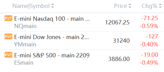 S&P 500 futures dipped 19 points, or 0.49% to 3886; Dow Jones Industrial Average fell 127 points, or 0.4% to 31240; Nasdaq 100 futures eased 71.25 points, or 0.59% to 12067.The S&P 500 has enjoyed four consecutive days of gains, its best winning run since the end of March, as some investors hoped that recent heavy losses — down 21% in the first half of the year — meant fears about declining corporate profits were now pretty much baked in.