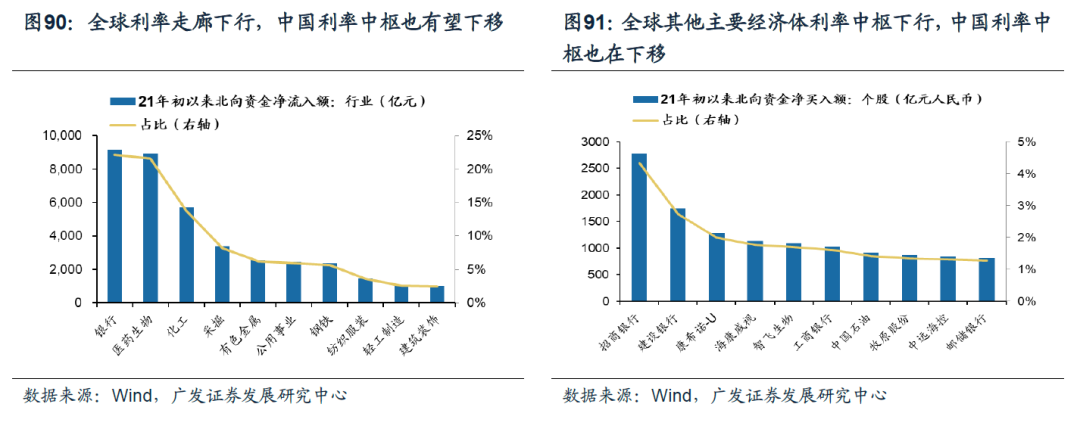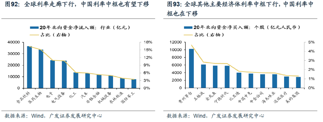 但北上资金的“口味”是在持续变化的,对核心资产的支撑或不一定有持续性。数据上来看,20年北上资金流入主要集中在核心资产(食品饮料/医药/电子等),但21年北上资金流入额边际抬升,不够流入的方向已经不是典型的核心资产了,而是银行/医药/化工等板块。所以我们认为:北上资金流入预期强化,可能阶段性支撑核心资产估值,不过,由于北上资金“口味”动态变化,对A股热门股估值的支撑可能会一定会持续。