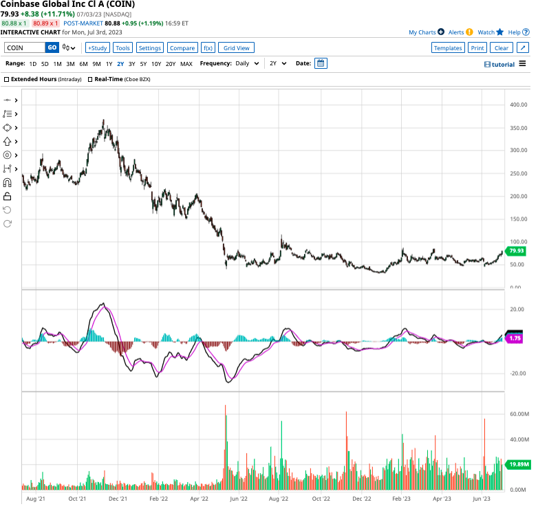 In case you are bullish on the long-term prospects of Bitcoin, it makes sense to invest in Coinbase stock right now. Despite the recent rally, BTC prices are still down about 60% from all-time highs, allowing you to buy the dip.