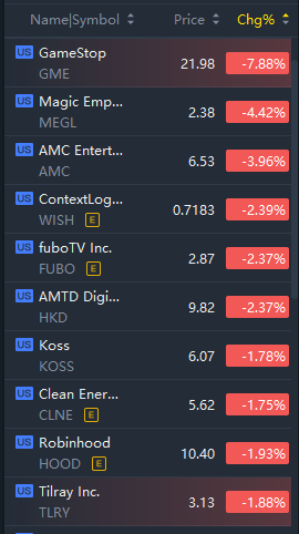 Meme stocks crashed in morning trading; GameStop fell over 7% while AMC Entertainment fell nearly 4%.