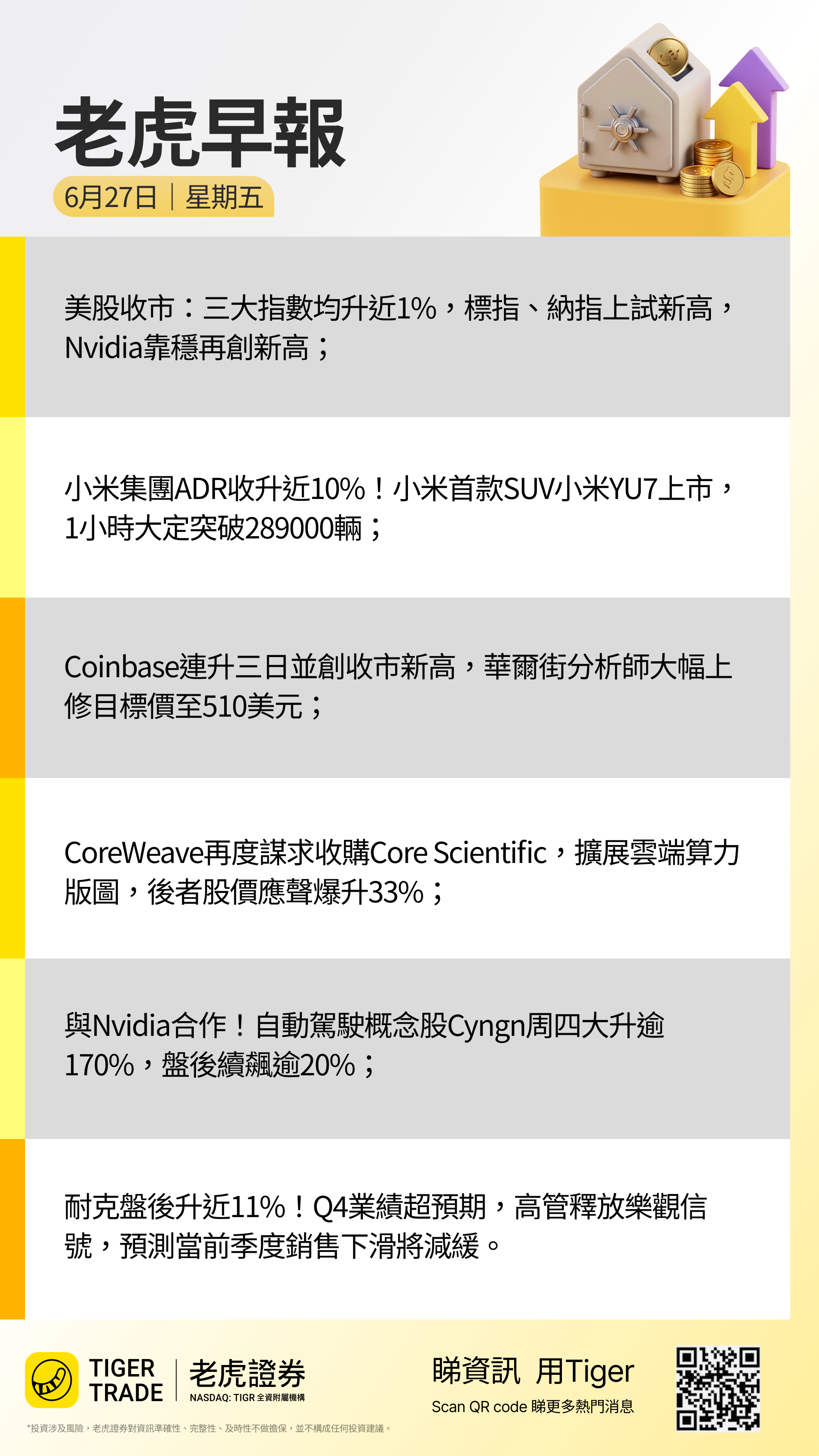 昨夜今晨|标普、纳指收近历史高位,英伟达续创新高;YU7销售火爆!小米ADR大涨近10%