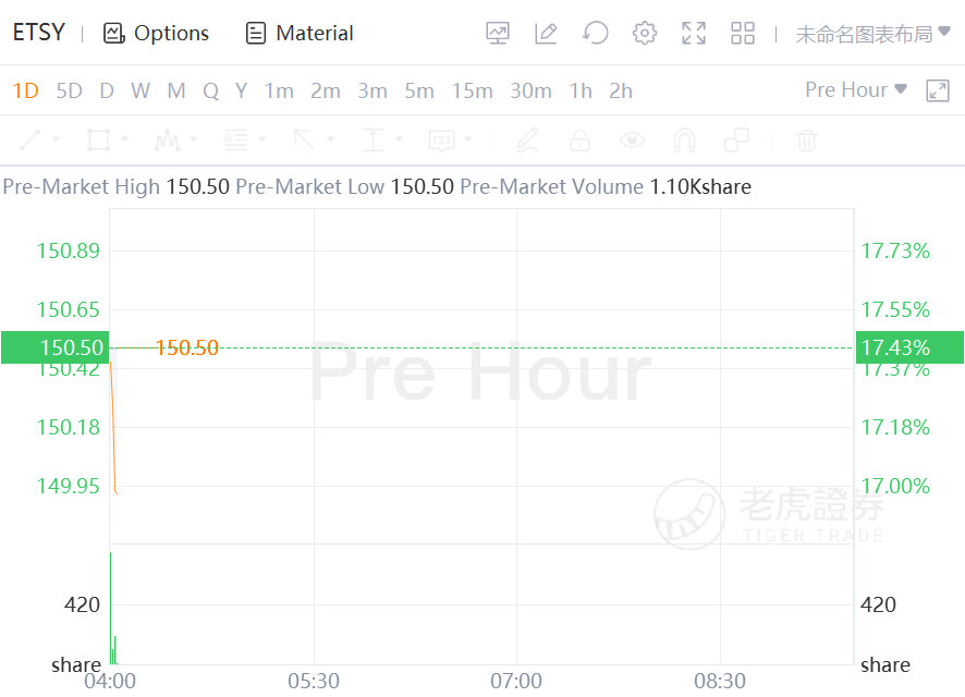 The 52-week trading range for Etsy (ETSY) is $109.38 to $307.75. Shares rose 19.96% in after-hours trading to $153.74 after gaining 10.00% during the regular session