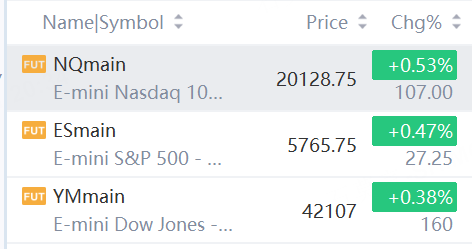 At 8:35 a.m. ET, Dow e-minis were up 160 points, or 0.38%, S&P 500 e-minis were up 27.25 points, or 0.47%, and Nasdaq 100 e-minis were up 107 points, or 0.53%.