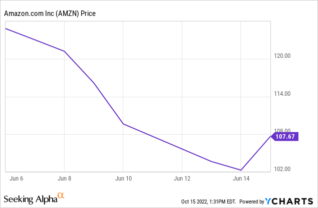 Amazon's stock price dropped like a rock after the stock split, falling nearly 18% in just over a week. It then bounced up more than 5% on June 15th, as shown below.
