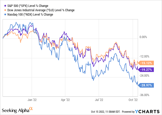 All of the major indices have dropped into bear territory this year. In fact, we are well into the tenth month of declines, as shown below.