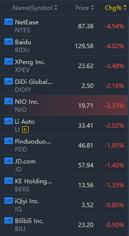 Hot Chinese ADRs slid in morning trading, with NetEase and Baidu falling over 4%.
