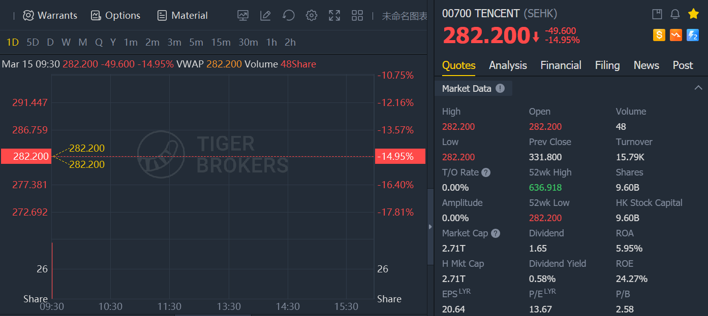 Tencent plunged nearly 15% in the pre market bidding stage on Tuesday.