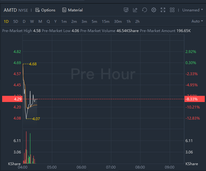 AMTD International slumped over 8% in premarket trading and tumbled nearly 70% in 4 days.