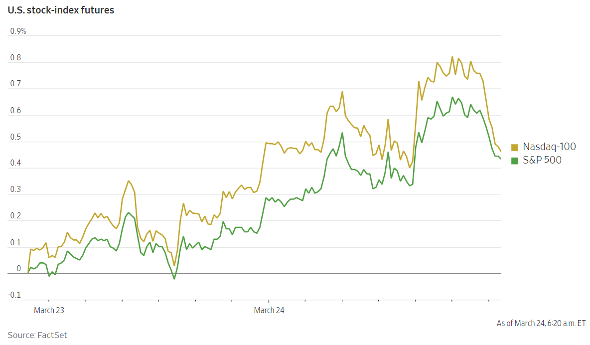 Futures for the S&P 500 added 0.4% Thursday. Contracts for the tech-focused Nasdaq-100 rose 0.5% and futures for the Dow Jones Industrial Average gained 0.3%.