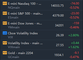 U.S. stock futures edged down as investors were concerned of further escalation in the war in Ukraine that could lead to shortfalls of commodities supply.