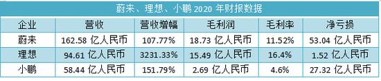 从2020年净亏损情况来看,其中,蔚来亏损53.04亿元,小鹏亏损27.32亿元,理想则亏损1.52亿元。
