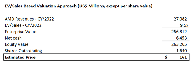 The AMD stock currently trades at about 5.8x EV/’22 sales, which is a significant discount to its peer group. Reasons for the discount include broad-based multiple compression due to tightening market conditions stemming from a blight of macroeconomic headwinds, which have particularly weighed on growth stocks like AMD that were previously trading at lofty valuations.