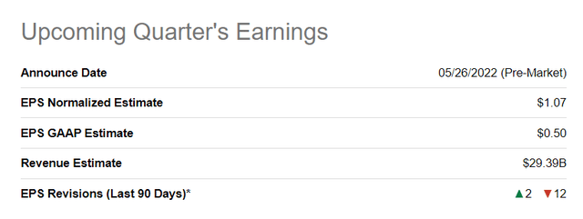 The expectation is for the e-commerce firm to report adjusted earnings per share of $1.07 for Q4'22, which implies a 33% decrease year over year. EPS revisions to the downside exceeded upward revisions by 6-to-1.