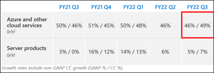 Within cloud, Azure is driving Microsoft’s revenue growth. Azure is Microsoft’s cloud computing platform that allows users to build, run and manage applications across different clouds which helps companies scale their digital transformations. Azure and other cloud services saw 49% revenue growth in Q3’22 (in constant currencies) which is the fastest revenue growth of any segment for Microsoft. Due to strong market demand for cloud-based solutions, growth remained strong throughout the last year with year over year top line growth rates never dropping below 45%.