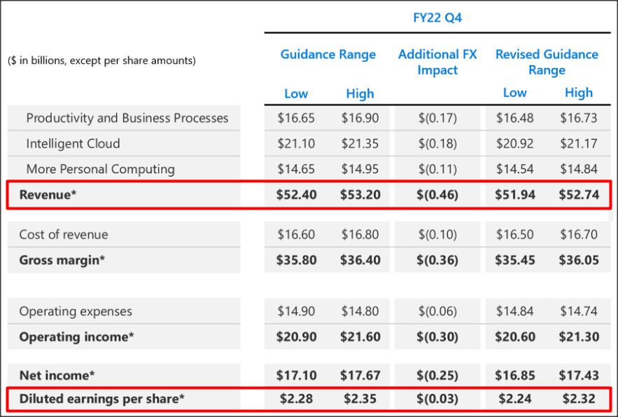 Microsoft lowered its expectations for Q4'22 revenues and EPS last week. The software and cloud company said that it expects $51.94-52.74B in revenues in the next quarter compared to a prior guidance of $52.40-53.20B while EPS guidance has been lowered from $2.28-2.35 per-share to $2.24-2.32 per-share. Shares of Microsoft skidded after the new outlook was presented, but I believe the market is overreacting to the updated guidance since the net effect is minimal: Microsoft lowered its revenue guidance by less than one percent while EPS guidance was lowered by less than two percent. While not an ideal outcome, the revenue and EPS effects are very small and hardly justify a fundamental reevaluation of Microsoft’s earnings and free cash flow potential.