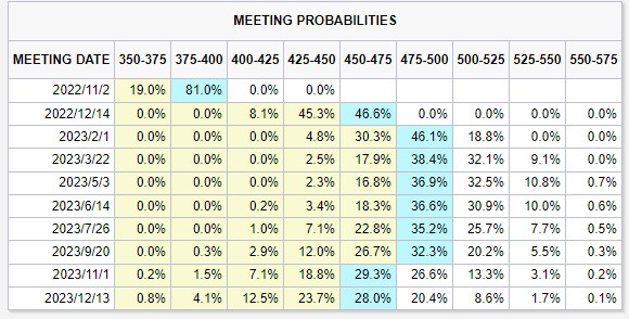 市场普遍预计美联储将在11月2日加息75个基点,以对抗持续的通胀环境,这一点市场基本上彻底定价。然而,过于激进的紧缩行动可能将美国推入经济衰退,导致美国国债出现有记录以来最严重的年度跌幅,而股市有可能出现2008年以来的最大跌幅。
