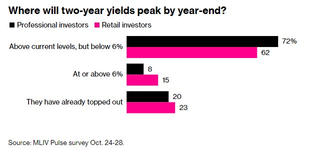 2年期美债收益率年底前的峰值将是多少? 受访者为专业投资者与散户