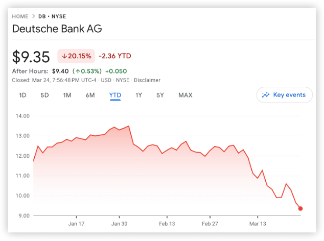 德银的下跌让许多华尔街分析师摸不着头脑。不像硅谷银行、签字银行或瑞信,没有任何征兆表明德银的流动性存在问题。
