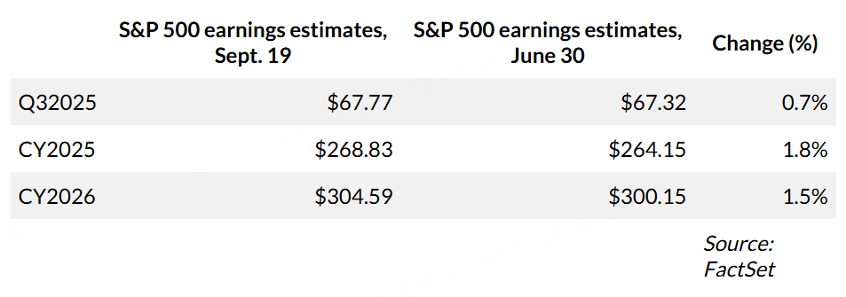 Earnings expectations for 2025 and 2026 have been on the rise. But even more promising for the near-term outlook: Analysts have continued to raise their expectations for the third quarter.
