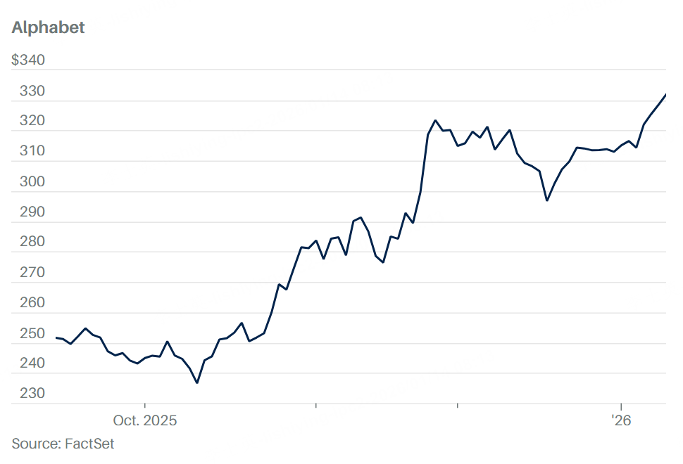 The stock closed up 1% at a new high of $331.86 the previous session after Apple and Google said they had formed an AI partnership, which lifted Alphabet’s total market capitalization past $4 trillion for the first time ever.