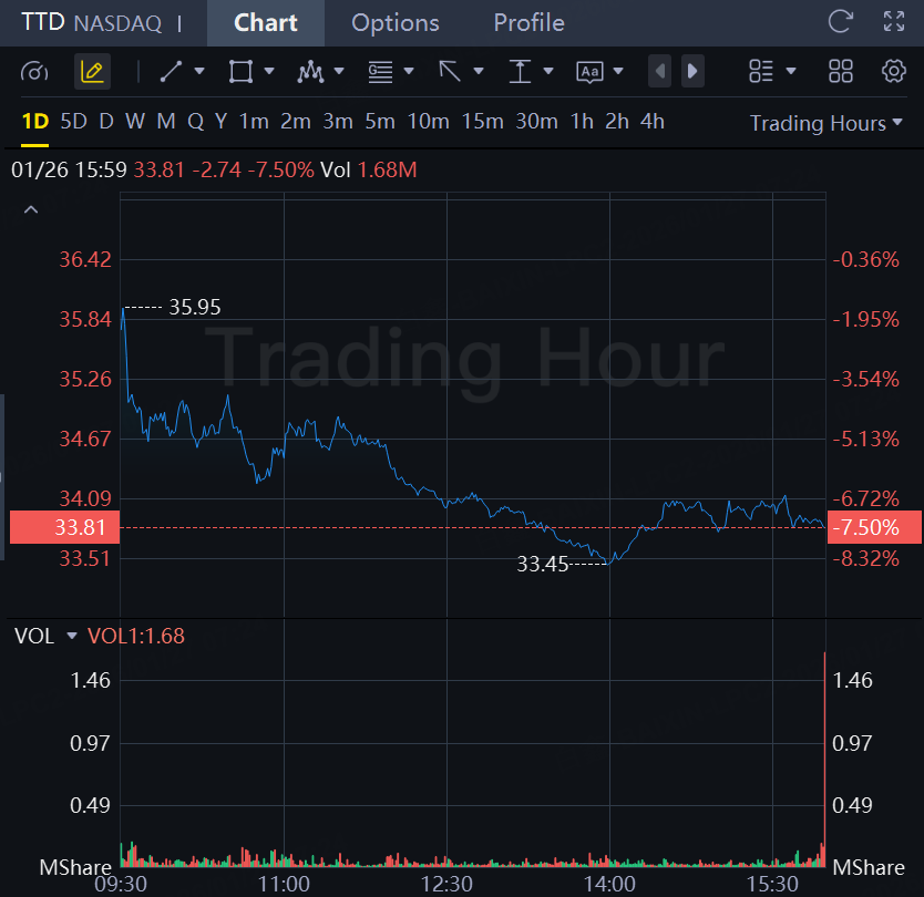 Trade Desk's stock has been beaten down lately. Its 68% decline last year was the worst performance of any S&P 500 SPX member, according to Dow Jones Market Data, although the company didn't actually join the index until July. The stock is off another 11% so far this year, factoring in the 7.5% decline in Monday's session, which ranks as the S&P 500's steepest on the day.