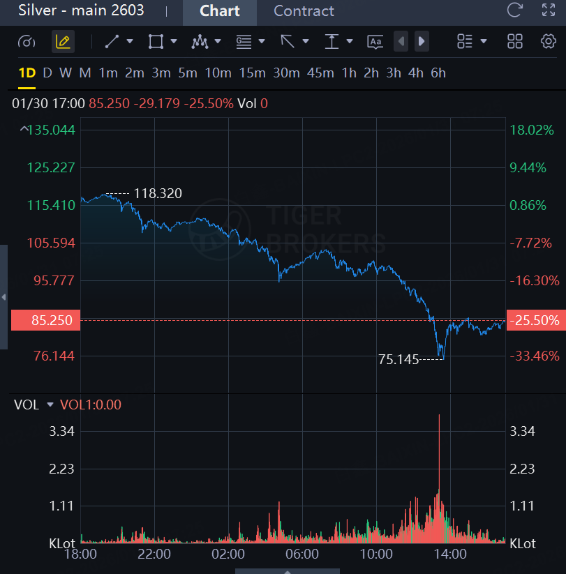 Silver prices crashed 31%, their sharpest drop since March 1980, when the Hunt brothers' effort to corner the market unraveled. February futures, which ended Thursday at more than $114 a troy ounce, settled at $78.29. The size of that drop--$35.747--was about the price of an ounce as recently as June.