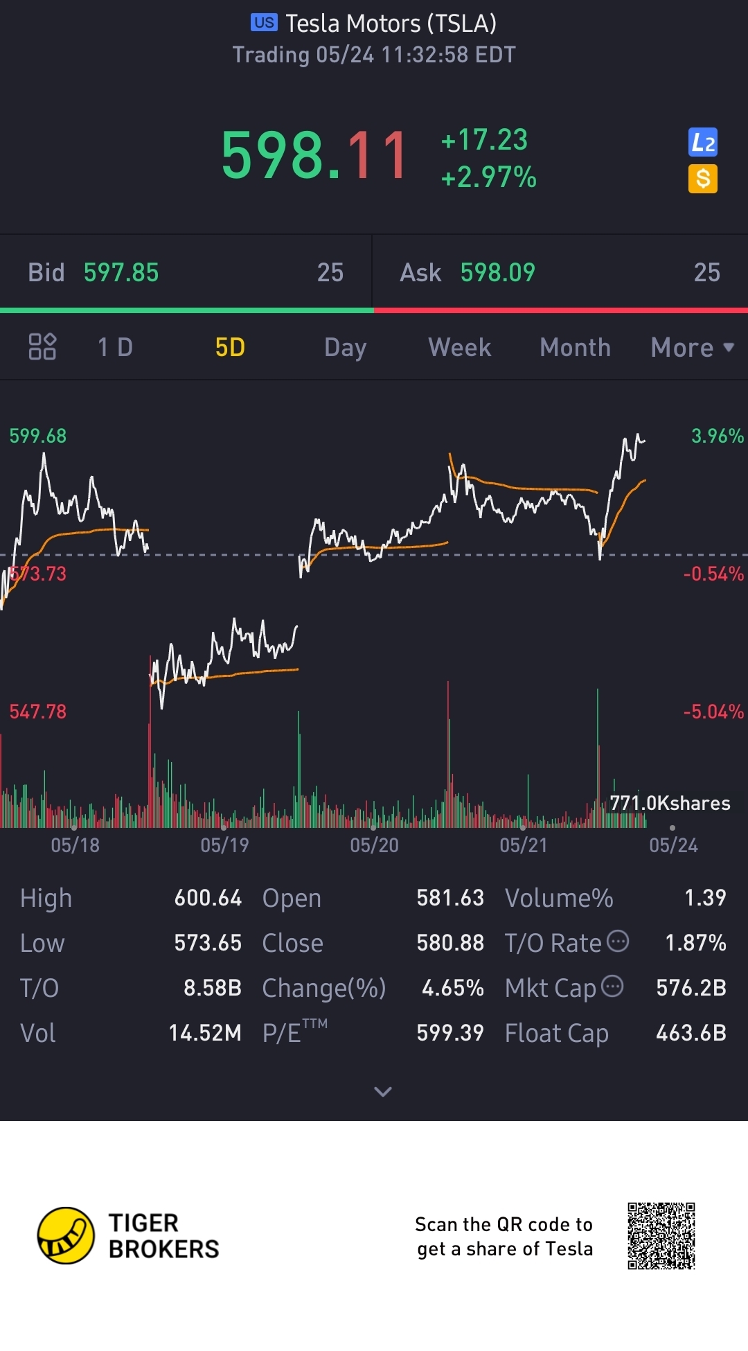 $Tesla Motors(TSLA)$slowly coming back up