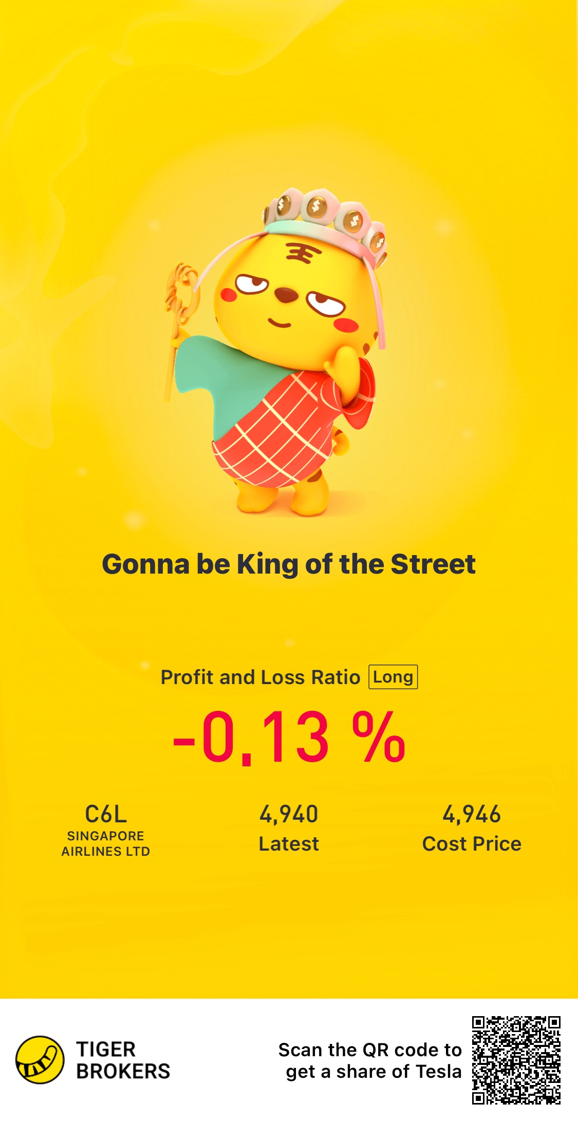 $SINGAPORE AIRLINES LTD(C6L.SI)$first trade on tiger. Let’s see where this one takes off to [Sly]