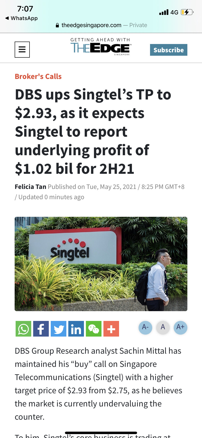 $SINGTEL(Z74.SI)$Extract from the Edge. 25 May 2021 . In thearticle, DBS analyst presented both Bull and Bearviews . 2.93 or 2. Hmm. Check it out from website .