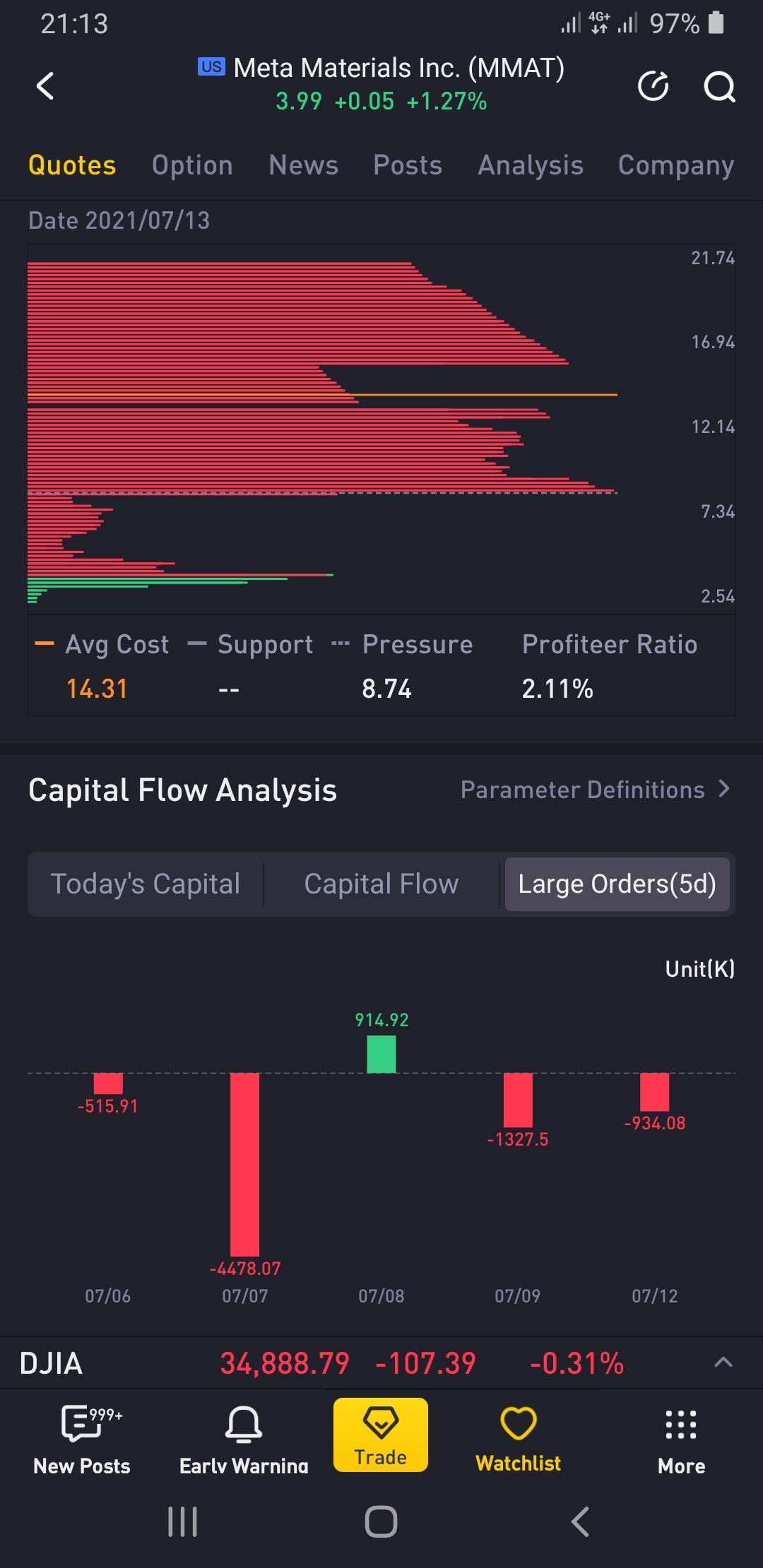 $Meta Materials Inc.(MMAT)$buyers less seller more , it can able to reach 7.34 lesser next few days , i signed out ready this stock , gud luck for all
