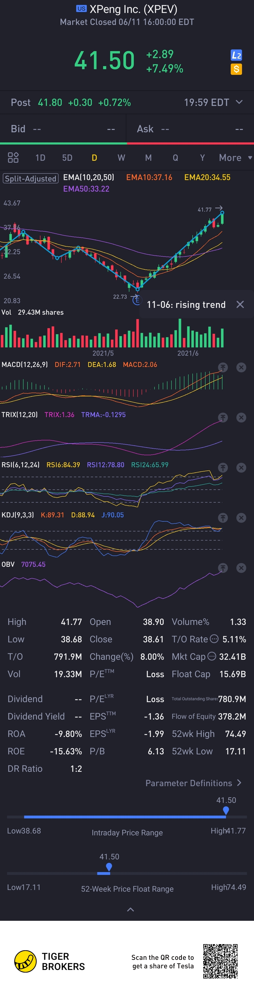 For XPEV, now still in uptrend, but need to cross over the resistances at 43 and then 51, in order to go up further.
