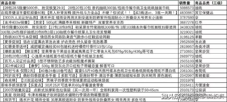 在拼多多的TOP級銷量中可以看到,抽紙、洗衣液、衝調、垃圾袋等等產品,同樣屬於京東中的高銷量標品,因此與京東有着一定的衝突關係。