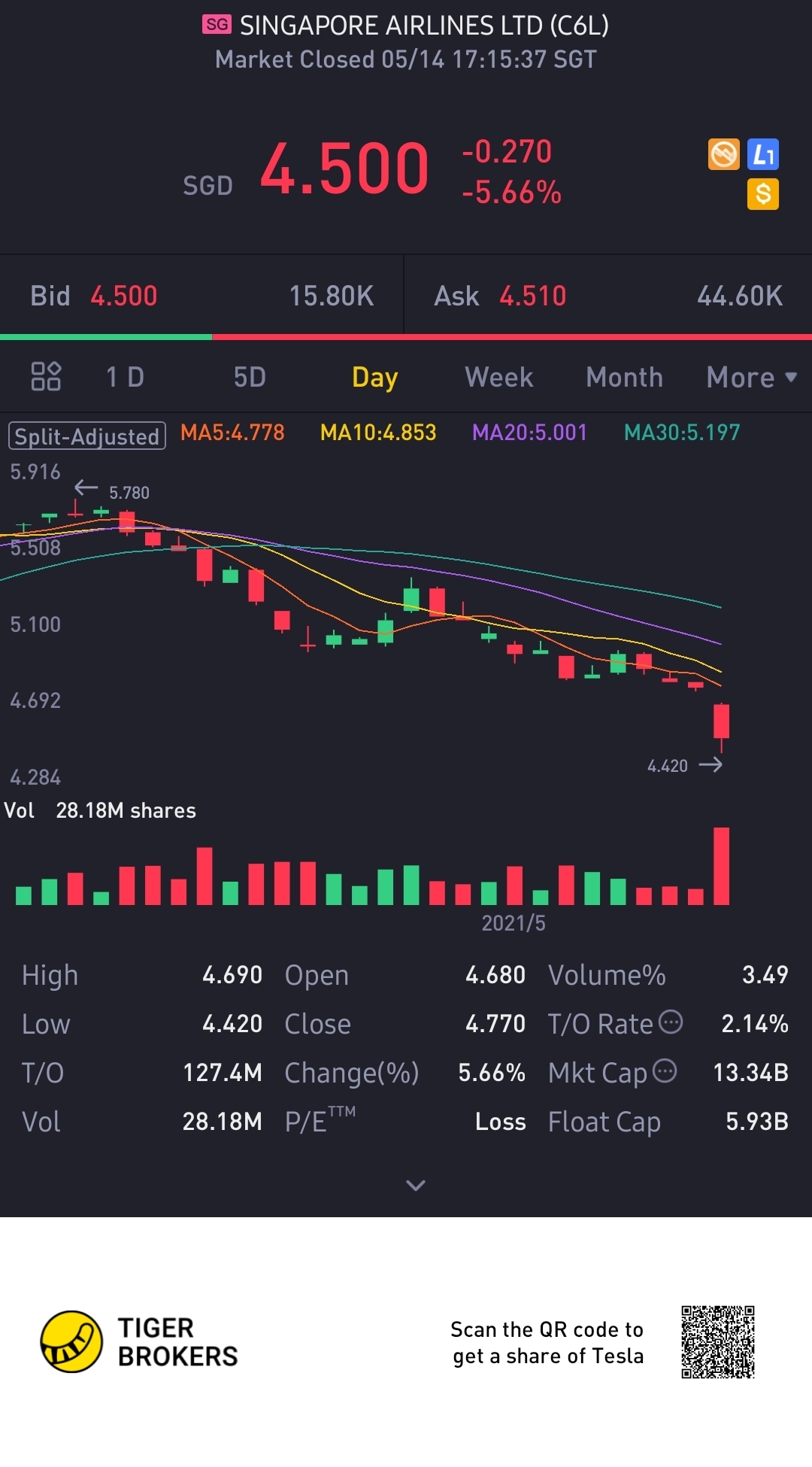 $SINGAPORE AIRLINES LTD(C6L.SI)$hit again by pandemic, expected to drop further