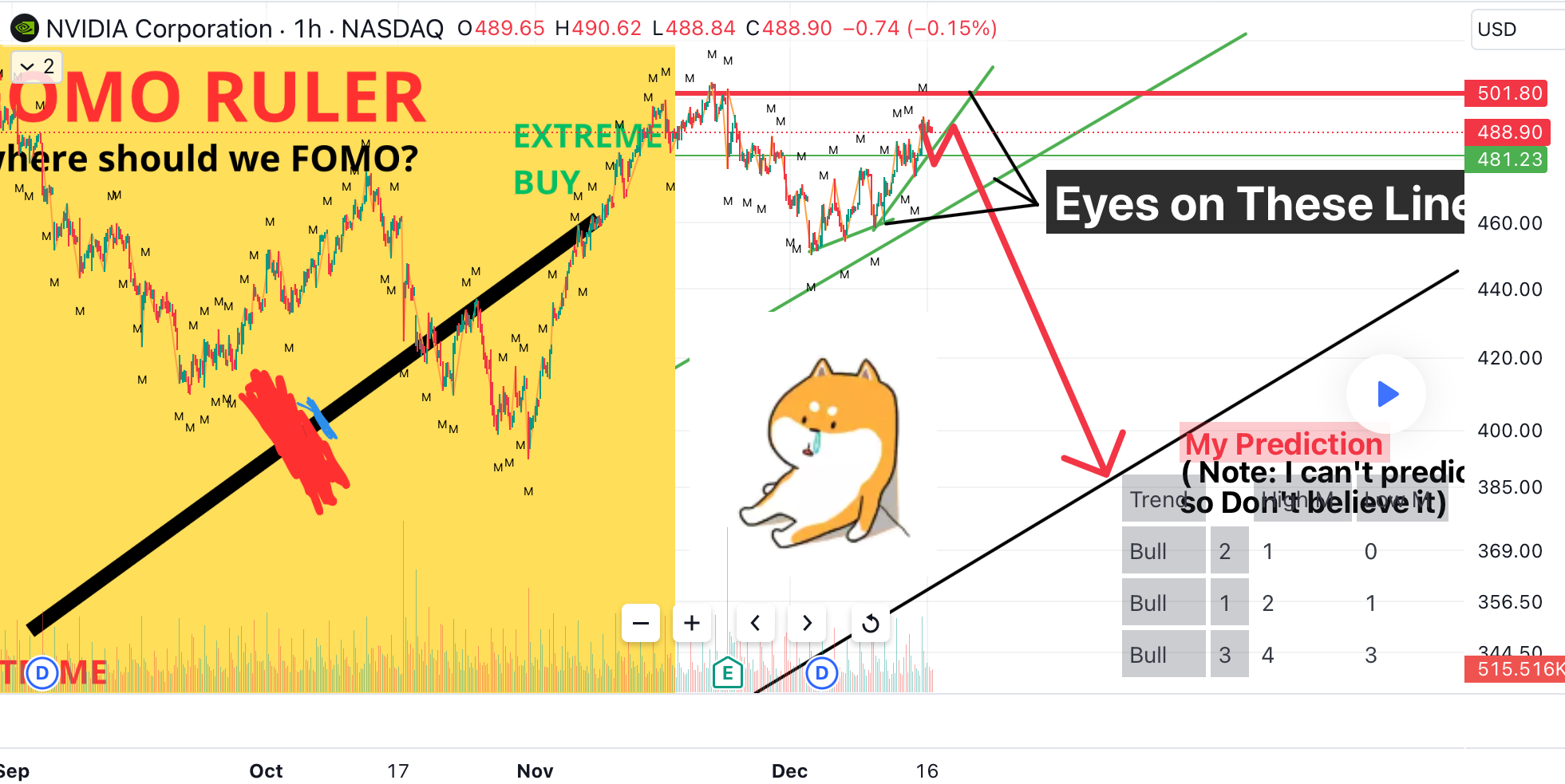 Because the current Bull Momentum of Nvidia is in harmony, we need to wait for the price to react (badly) to the green line on the chart before considering a SELL.