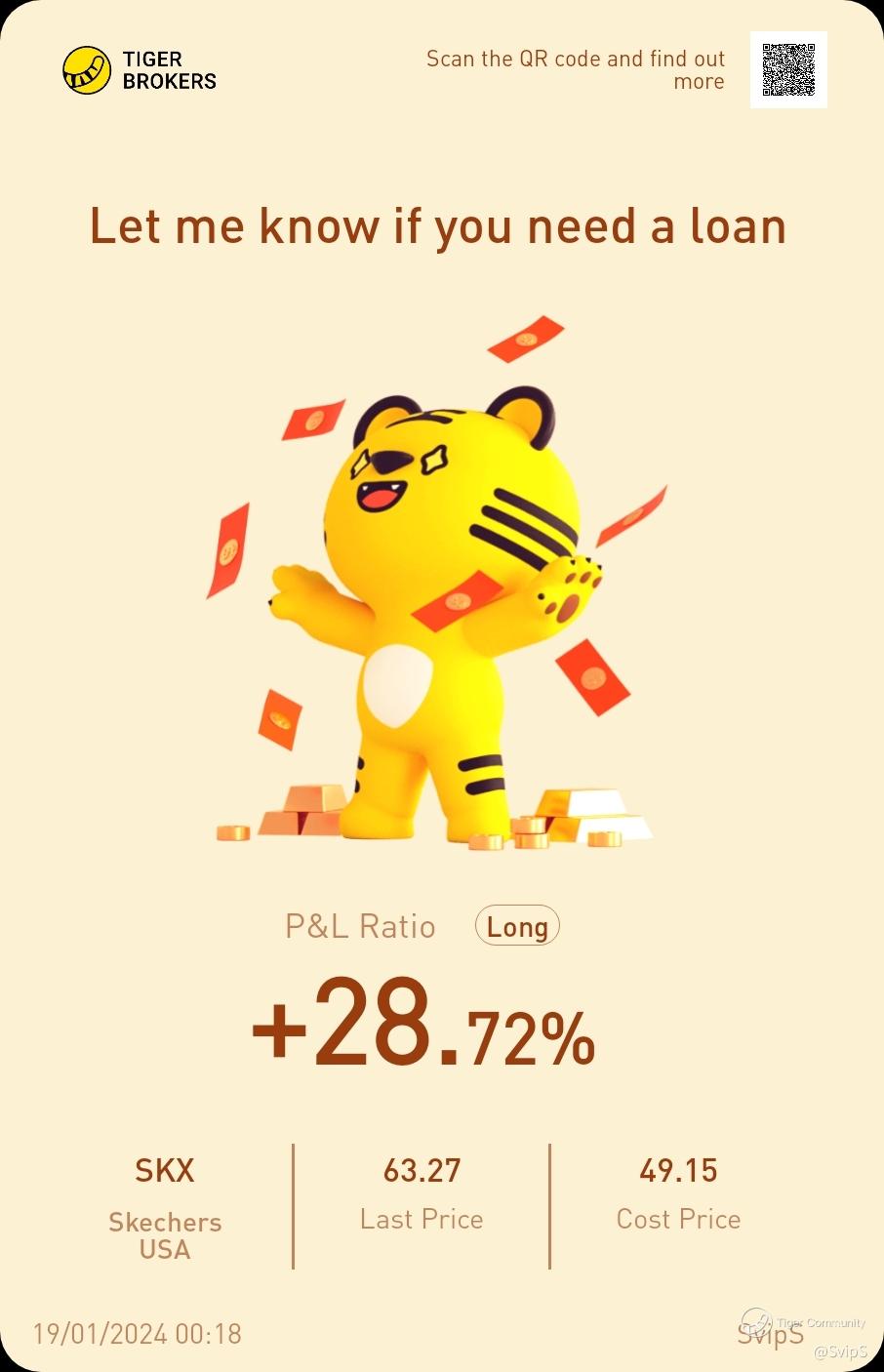 $Skechers USA(SKX)$ Lucky. Hope it keep growing.