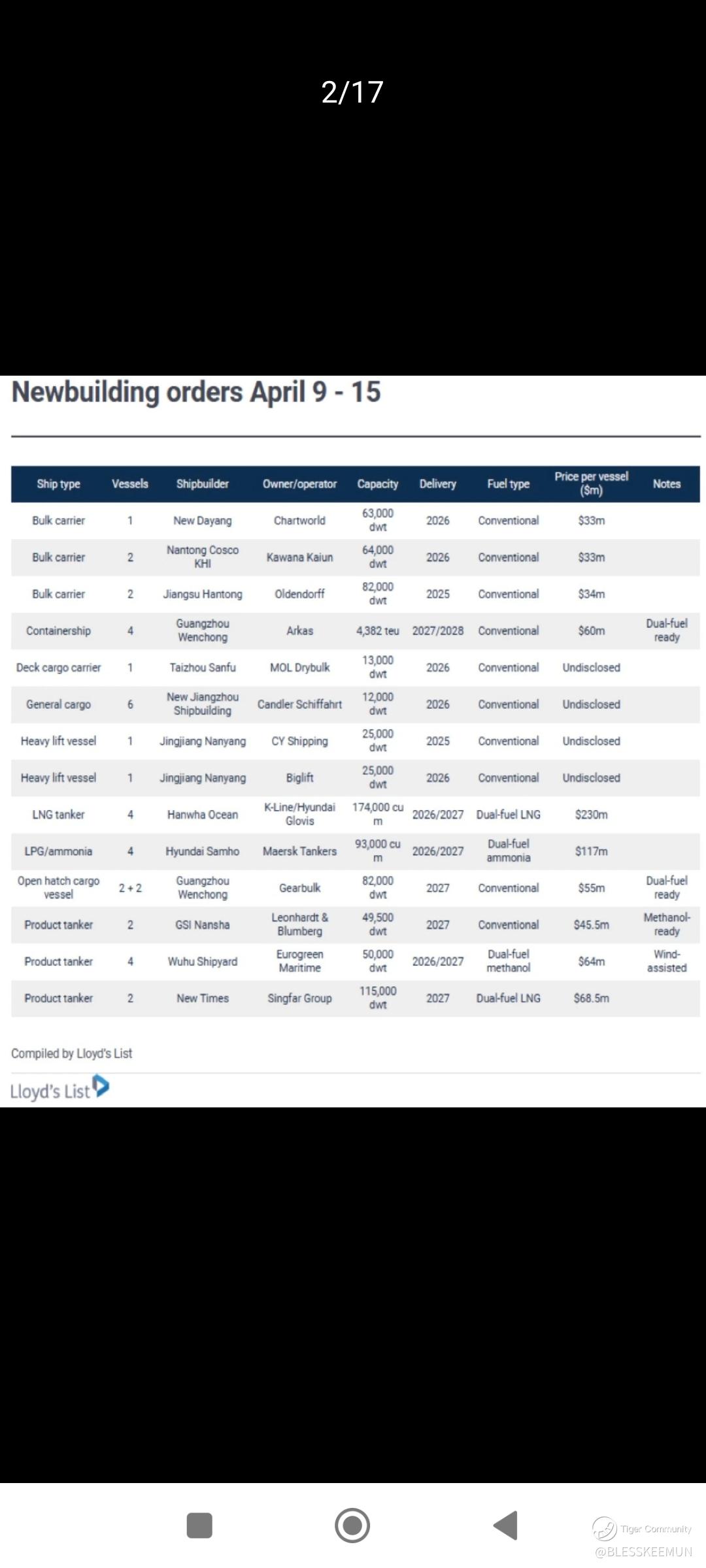 YZJ Latest Won Orders as at 25/4
