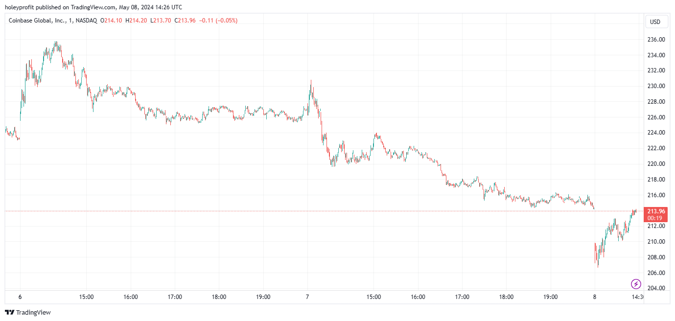 We now have a head and shoulders pattern. Head and shoulders usually go to at least 1.61 extensions of the head. This is a bit under 180 in COIN, so I am buying puts for that strike.