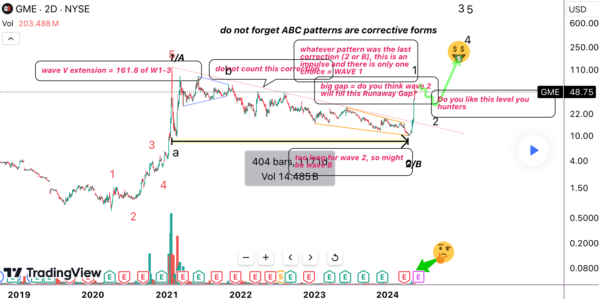 As we all expected , this symbol reversed (if it is impulse) but what is really important for me is the correction pattern that GME is going to make in the next week. In terms of Elliott Principle, what did happen today morning was Smart Money as wave 1 which is not for us unless you would sit in the front of your screen for more than 1000 days to catch it or having the right news.