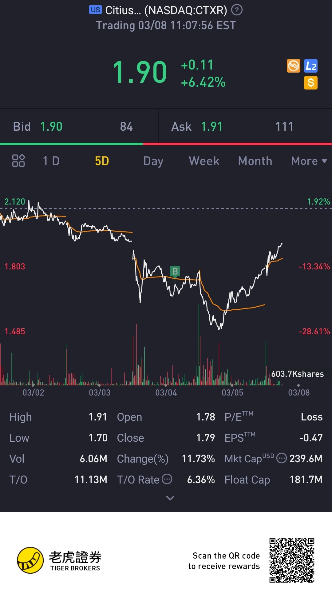 $Citius Pharmaceuticals, Inc.(CTXR)$Gonna buy more!! ?????