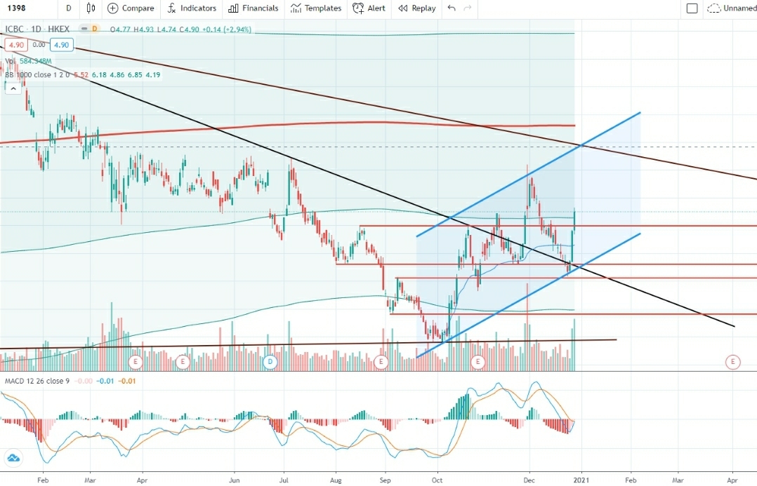 After previous breakout failed, price has rebounded off support of uptrend channel. MACD is turning positive.