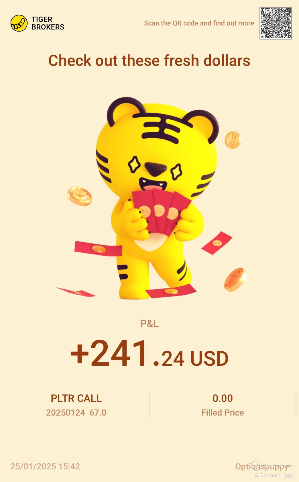 You earned a 3% return in just 10 days by combining share ownership and options trading. Let me know if you’d like me to help format this into a polished article!$PLTR 20250124 67.0 CALL$ @MillionaireTiger @TigerStars @CaptainTiger @TigerTradingNotes