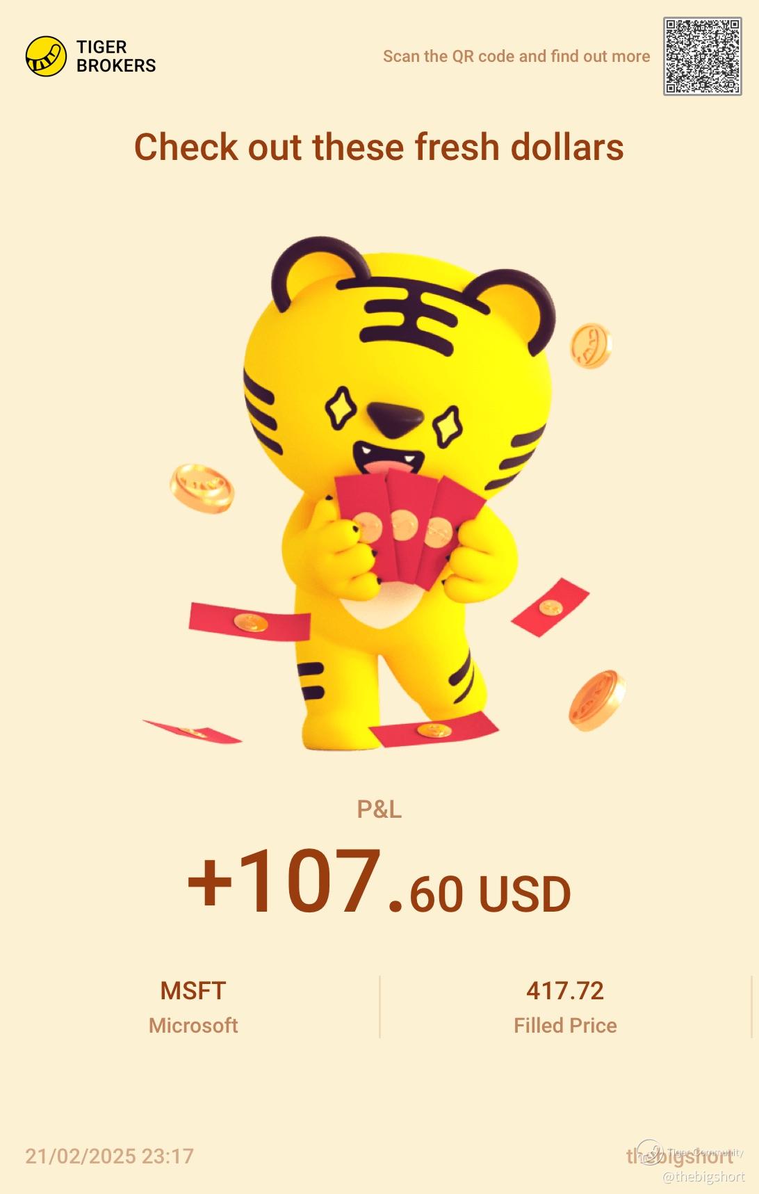 $Microsoft(MSFT)$ Easily bullish. TP today as US market is very choppy due to China market dominating and tariffs looming. Overall MSFT has no downside, strong earnings and fundamentals. Will return to $44x range in time to come. As usual, friday is mix for market hence TP first. Will look to enter long positions at more desirable price.