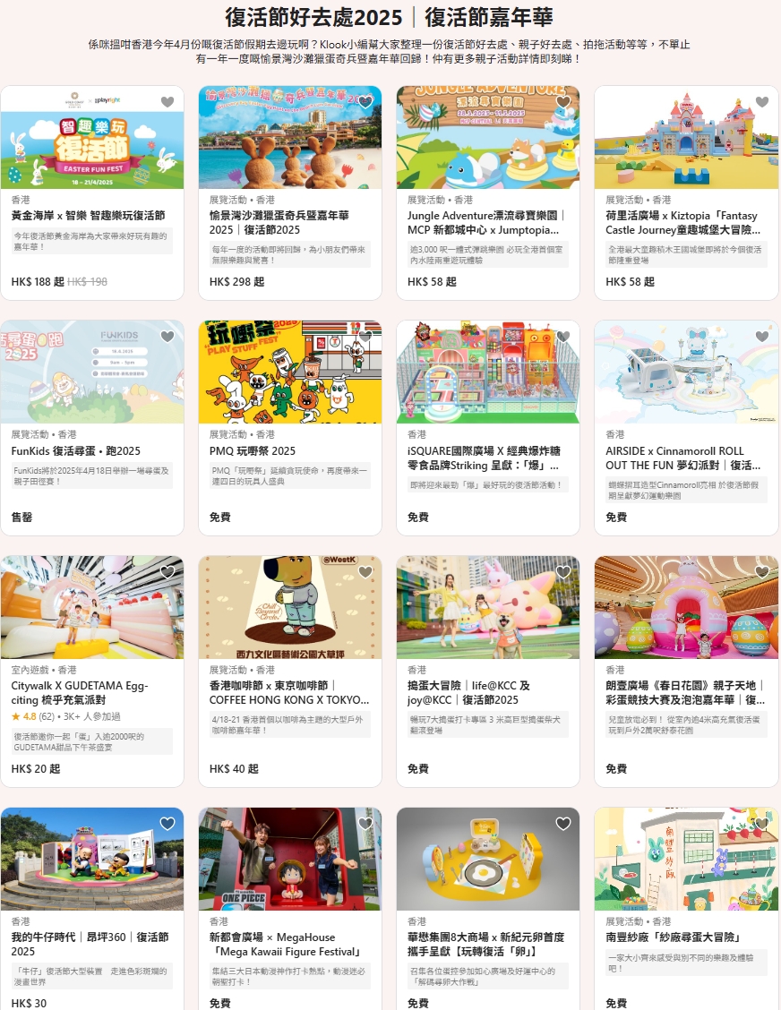 此外據Klook網站推薦,還有以下眾多旅遊景點值得復活節打卡噢~[Heart]