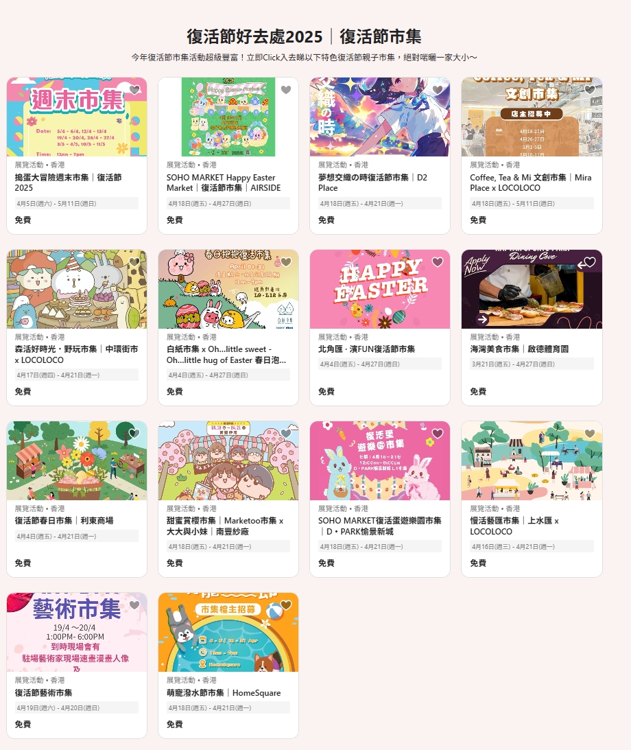小貼士:部分熱門活動需提前預約(如愉景灣獵蛋、西九咖啡節),建議規劃行程時留意官網公告。復活節假期橫跨週末,可善用「請4休10」假期組合,深度探索香港多元活動!