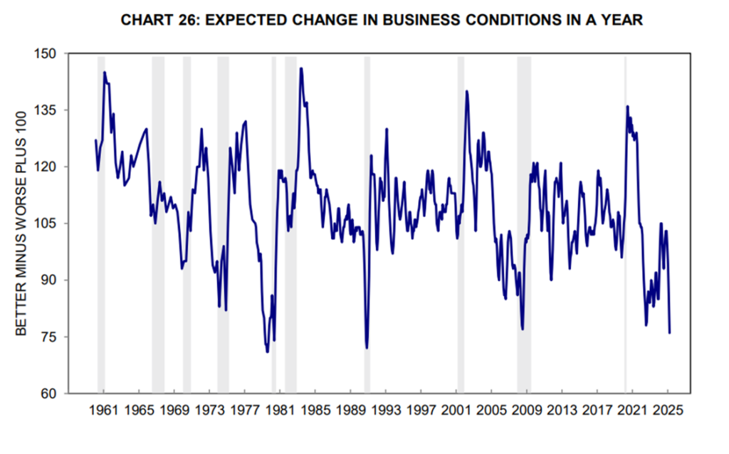 More than 70% of Americans now expect business conditions to be worse in 12 months. This is the highest level since 2008, and the third worst level on record since 1960.